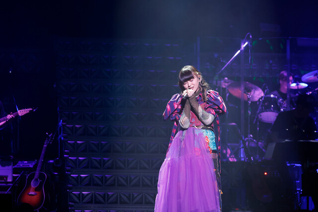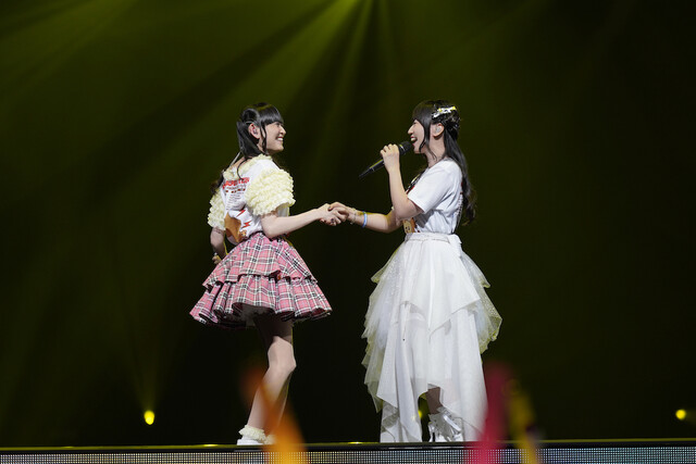 センターステージで「MAGICAL DESTROYER」を座り込んで歌うなどのパフォーマンスで魅せた愛美は、最新曲「メリトクラシー」はギターを弾きながら披露。コラボステージではatsuko×カノエラナと共にアニメ『先輩がうざい後輩の話』主題歌「アノーイング! さんさんウィーク!」をコラボするなど、声優、アーティストやミュージシャンなどの枠を越えた、楽しくわちゃわちゃした感じが会場を盛り上げた。