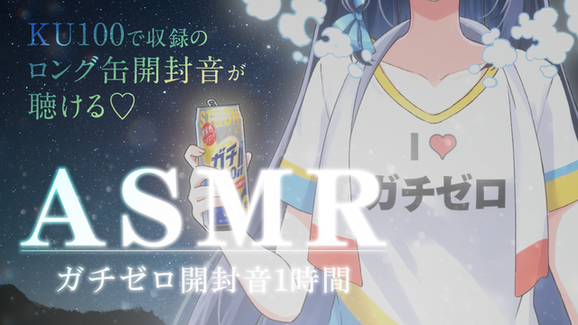 本動画では、シュワちゃん(CV. 佐倉綾音)による案内の後、ロング缶であるガチゼロの開封音を1時間楽しめる動画に。KU100にて収録の高音質な開封音となっている。
