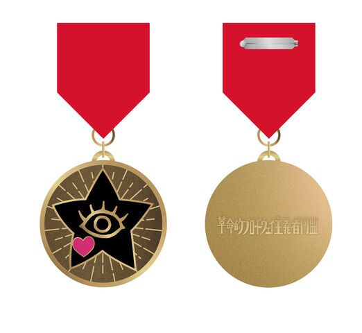 また、法人別購入者特典と完全生産限定盤に付属する勲章バッジのデザインも解禁された。バッジのネーミングは上坂すみれが考案した「栄光の同志勲章バッジ」に決定し、これまでアーティスト活動を支えてくれた同志にとっては必携のアイテムとなっているぞ。
