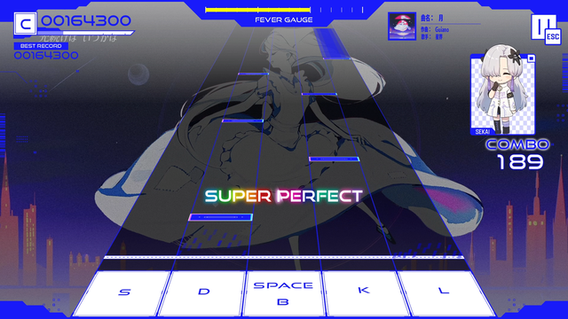 ・4レーンから7レーンまで楽曲に合わせて変動するユニークな譜面は、HARDCORE TANO*Cが制作。EASY~PROの4段階の難易度によって、初心者から上級者まで楽しめる。