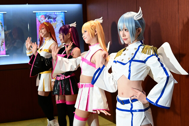リリエルのえい梨さん、ミリエラの篠崎こころさん、ノキエルの綺太郎さん、アリエルの高見奈央さんが、素敵なコスプレ衣装をまとってポージング。最後は、キャストの生セリフをきっかけに、4人でコミケでのポーズを取るというスペシャルな撮影会が実現。会場にスマホのシャッター音が響き渡り、レイヤーイベントさながらの様相を呈していた。