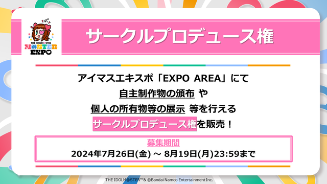 「THE IDOLM@STER M@STER EXPO」において、出展していただけるサークルを募集いたします!