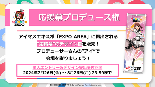 公演当日の2024年12月14日(土)、12月15日(日)に幕張メッセ・アイマスエキスポEXPO AREA内に掲出される“応援幕”のデザインを募集いたします!