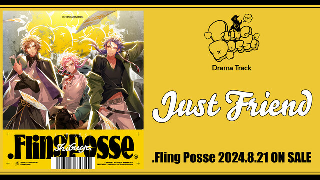 待望の新作CDを7か月連続でリリース中の、音楽原作キャラクターラッププロジェクト「ヒプノシスマイク –Division Rap Battle-」。8月21日(水)発売のシブヤ・ディビジョン『.Fling Posse』(ヨミ:フリングポッセ)に収録されている新作ドラマトラック「Just Friend」の一部がヒプノシスマイク公式YouTubeチャンネルで公開となった。