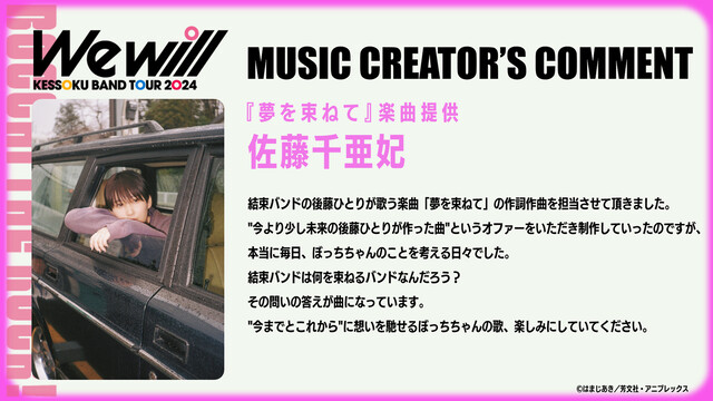 結束バンド NEW EP「We willl」に収録された全4楽曲の楽曲提供アーティストが解禁された。佐藤千亜妃、04 Limited Sazabys、大木伸夫(ACIDMAN)、石原慎也(Saucy Dog)ら、豪華4組のアーティストが『ぼっち・ざ・ろっく!』のために作詞作曲を手掛けた楽曲は必聴だ。