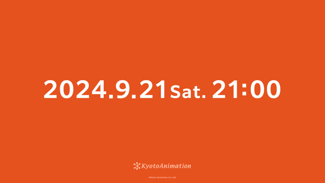 京都アニメーションの公式SNS、公式YouTube「京アニチャンネル」のコミュニティにて、謎の予告ビジュアルが公開された。【2024.9.21 Sat. 21:00】と日時だけが記載されたビジュアル、何が起こるかは明かされていない。