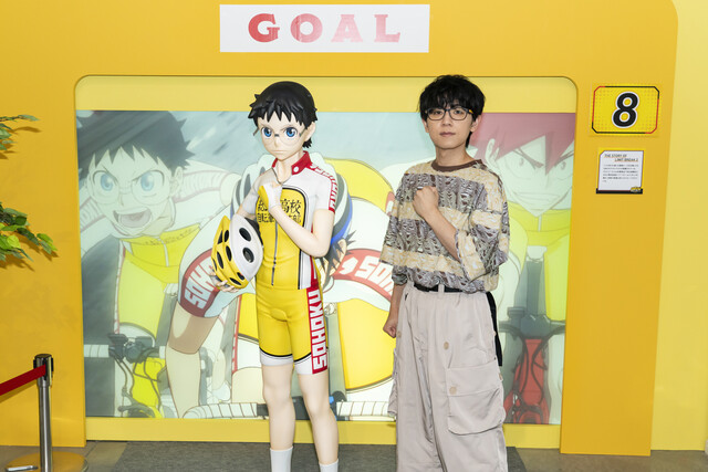 イベント前、山下大輝さんに展覧会を見学いただきました。その一部を紹介。TVアニメ『弱虫ペダル』の10年の歴史を会場で確認しよう。