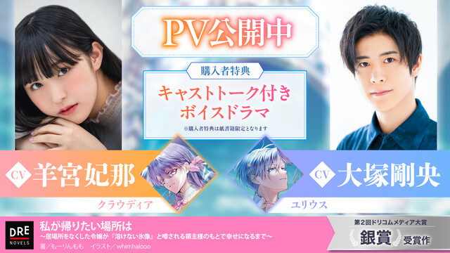 株式会社ドリコムの出版・映像ブランド「ドリコムメディア」は、小説公募新人賞「第2回ドリコムメディア大賞」の《銀賞》受賞作『私が帰りたい場所は ~居場所をなくした令嬢が『溶けない氷像』と噂される領主様のもとで幸せになるまで~』を2024年11月7日(木)にDREノベルスより発売する。