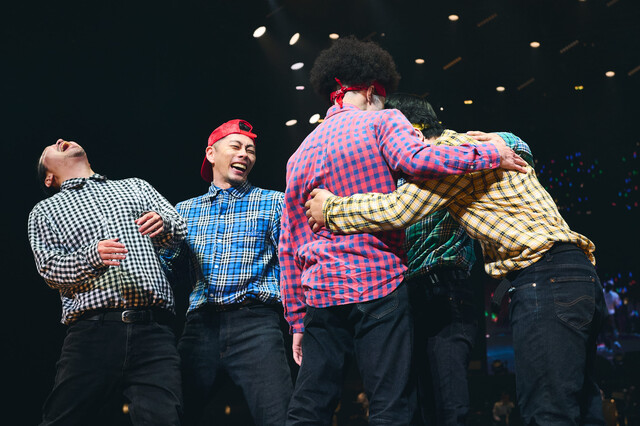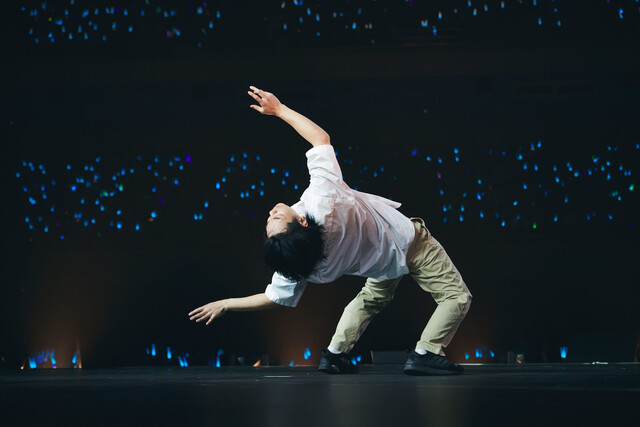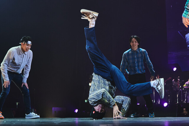 まず、超満員の武道館に響いたのは、彼らのオリジナルソング『VERSUS』。イントロが鳴り響くと、大歓声とともにRABが登場、続けて『アイドル』『ロキ』と、インターネット史に刻まれた名曲で圧巻のパフォーマンス。オリジナルの楽曲だけではなく、アニメソング、ボーカロイド曲と、RABがどういった楽曲や文化でダンスをしてきたのかを伝えるには十分なオープニングだ。そもそも、オリジナルの振り付けを作ることは多々あれど、自身らのオリジナルソングというものを持つ踊り手はそうそう居ない。しばらく見ない間に、いろんな事をしてきたなと感じた。