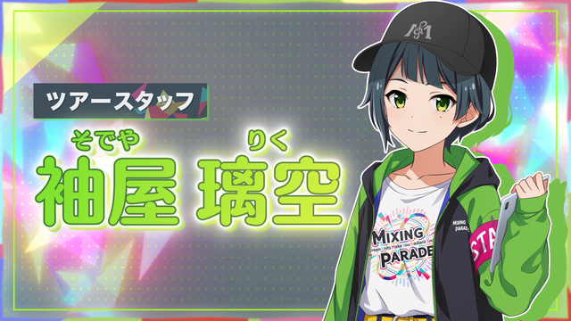 「アイドルマスター TOURS」のツアースタッフとして、プロデューサーやアイドルたちをサポートする、「袖屋 璃空 (そでや りく)」(CV:千春)が新しいキャラクターとして加わる。