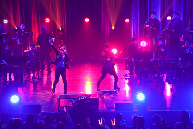 「世界征服なんて面白いかもしれないな」からの3曲には、コンポーザーの片山修志もピアノ(キーボード)演奏で参加し、会場の没入感をさらに高めていく。
