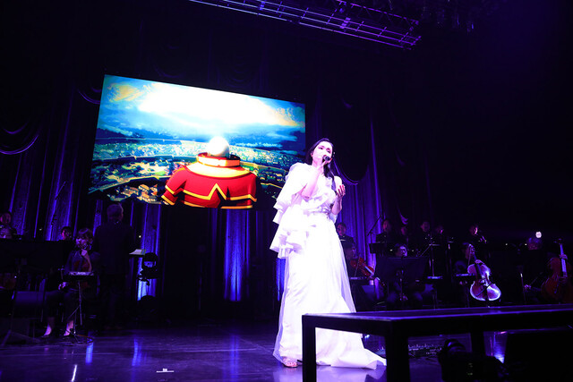 また、武王との激突シーンを彩る「Battle with Pride」の演奏後には、勝敗が決した後のアインズによる演説シーンを再現するなど、アニメ本編とのリンク感を高める演出もステージさらに盛り上げていく。