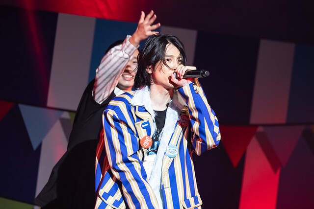 続いて、村田さんがステージに登場。望からバトンを受け継ぎ、廉の「Bloom -恋歌-」を披露します。爽やかな優しい歌声によって、たちまち会場は柔らかい雰囲気へと変化。真剣に心を込めて歌う姿に胸が熱くなり、余韻を噛みしめるように両手を広げ、客席へ深く一礼する姿に、会場全体が温かな感動に包まれました。